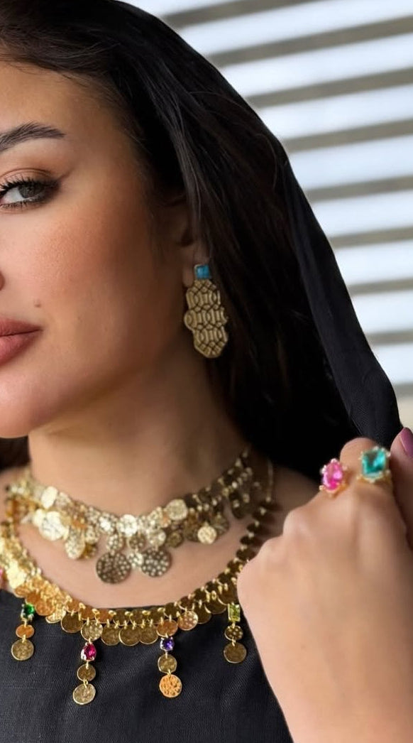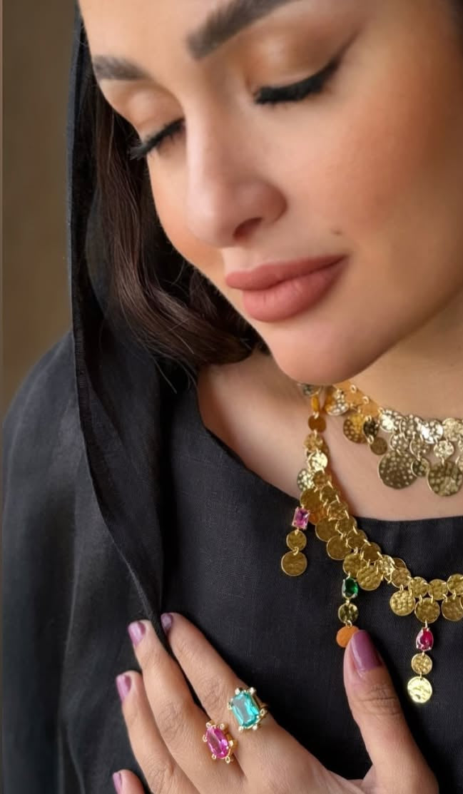 خاتم فضه مطلي دهب مع أحجار