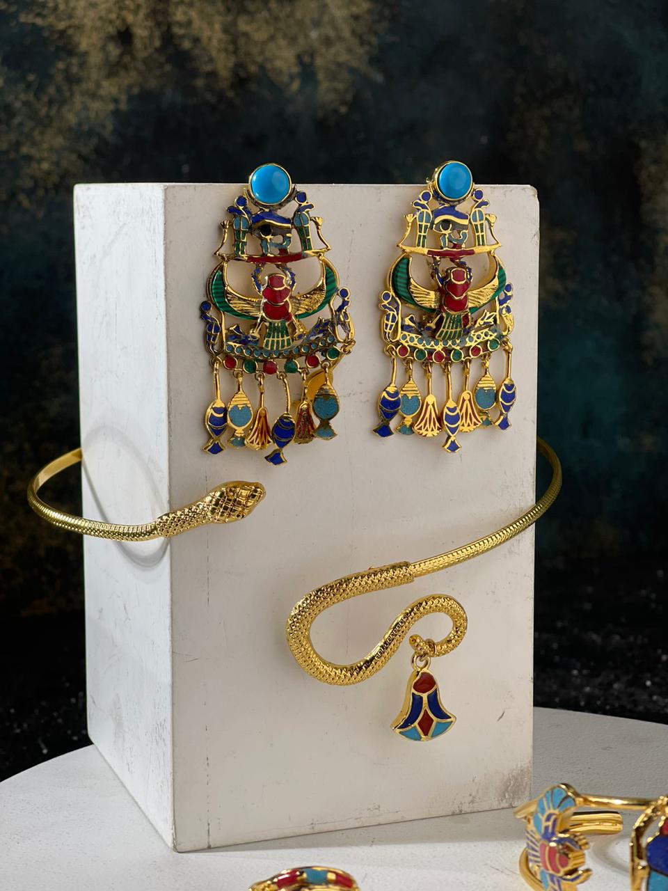 كوليه نحاس مطلي بالذهب عيار 18 على شكل ثعبان بالطراز الفرعوني
